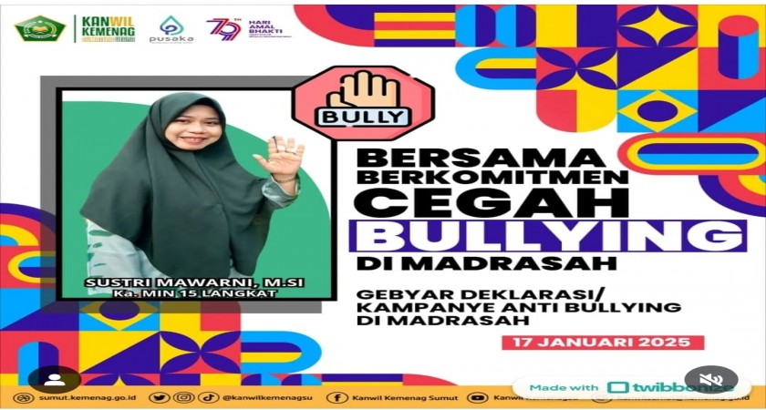 Kepala MIN 15 Langkat menyampaikan bahwa madrasah harus menjadi tempat yang ramah bagi semua siswa, tanpa adanya intimidasi atau perlakuan tidak menyenangkan. "Kami berkomitmen menciptakan lingkungan yang bebas dari bullying. Semua siswa berhak merasa aman dan dihargai di madrasah," ujarnya.
